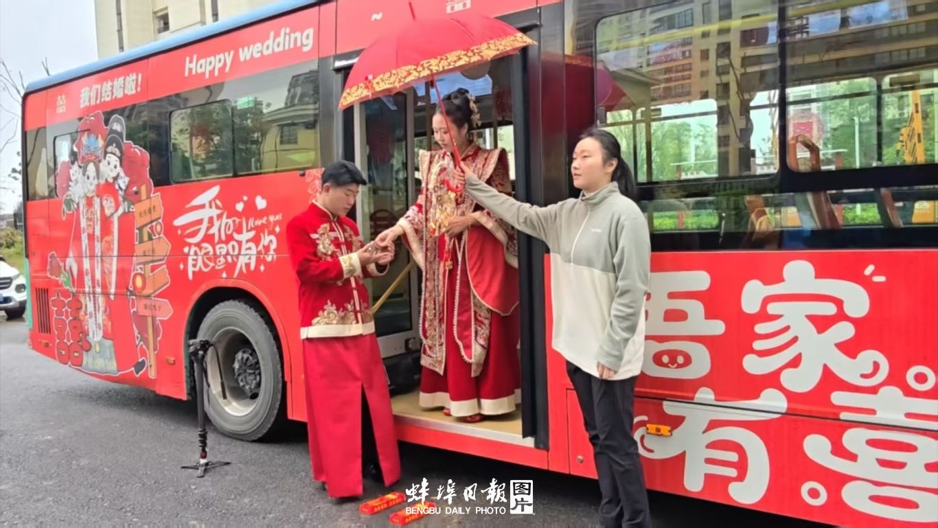 “以前握着方向盘开131路公交穿梭蚌埠街巷,今天坐着公交当新娘,这是属于我的‘职业浪漫’!”10月18日,曾经蚌埠公交司机窦梦珊,用一辆装饰一新的公交车完成接亲仪式,这辆承载着她青春记忆的“婚车”,在蚌埠街头成了抢眼风景线,引得路人驻足祝福,新郎邱明君则全程相伴,将这份特别的浪漫定格。