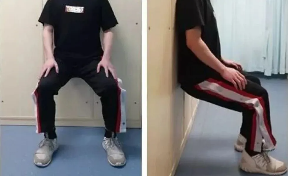 肌肉力量比较强的人,可以采用靠墙静蹲的方法进行锻炼。膝关节屈曲不超过90度,由于是静止状态,对膝关节损伤也可以忽略。