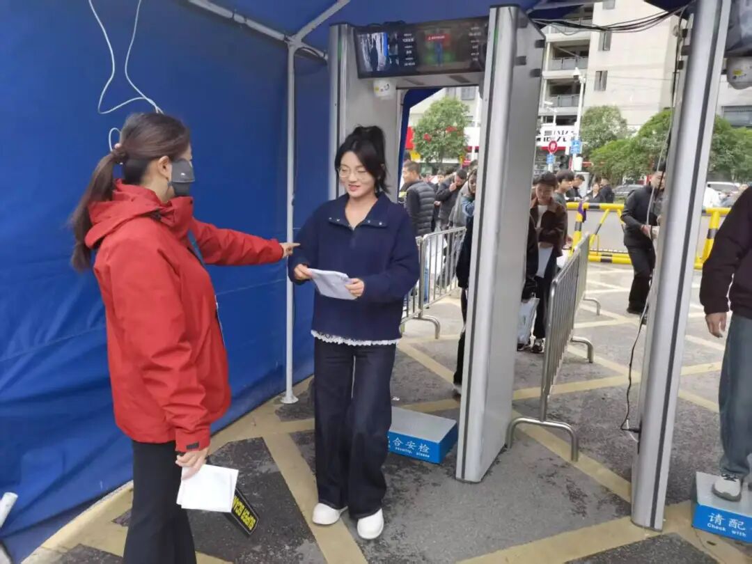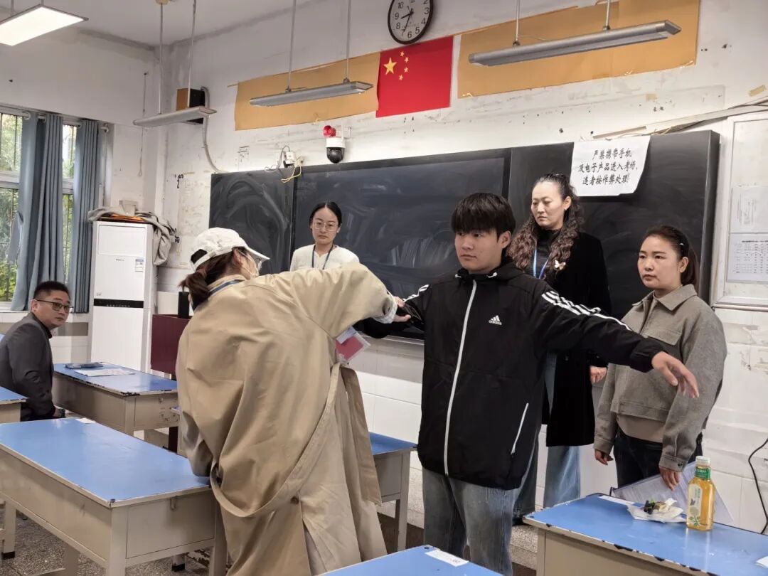各考点严把考场入口安全关,严格规范安检操作流程,对考生及随身物品实施全方位、无死角检查,坚决杜绝手机、智能手表、智能眼镜等违规物品进入考场,筑牢考试安全第一道防线。考试期间,监考人员全程实时巡查,重点核查考生身份验证、异常动作及物品使用情况,依法依规处置违规行为。