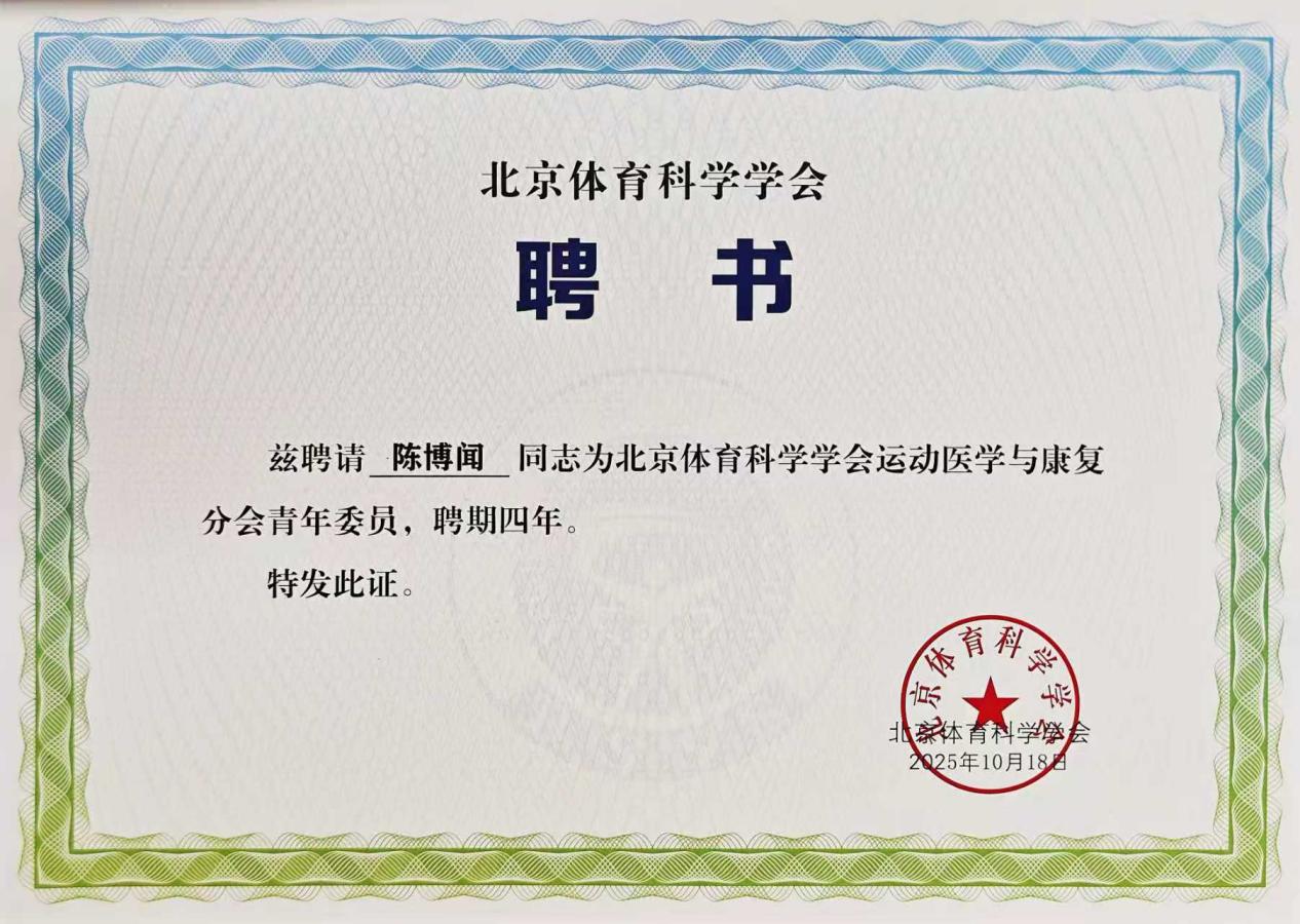 近日,在以“脊柱健康的全生命周期管理——从大众预防到运动员损伤康复”为主题的北京运动康复研讨会上,锐博康复创始人陈博闻被聘任为北京体育科学学会运动医学与康复分会青年委员。这不仅体现了行业对锐博专业实力与学术贡献的高度认可,也代表着锐博在推动中国运动康复理念创新与行业发展的积极担当。