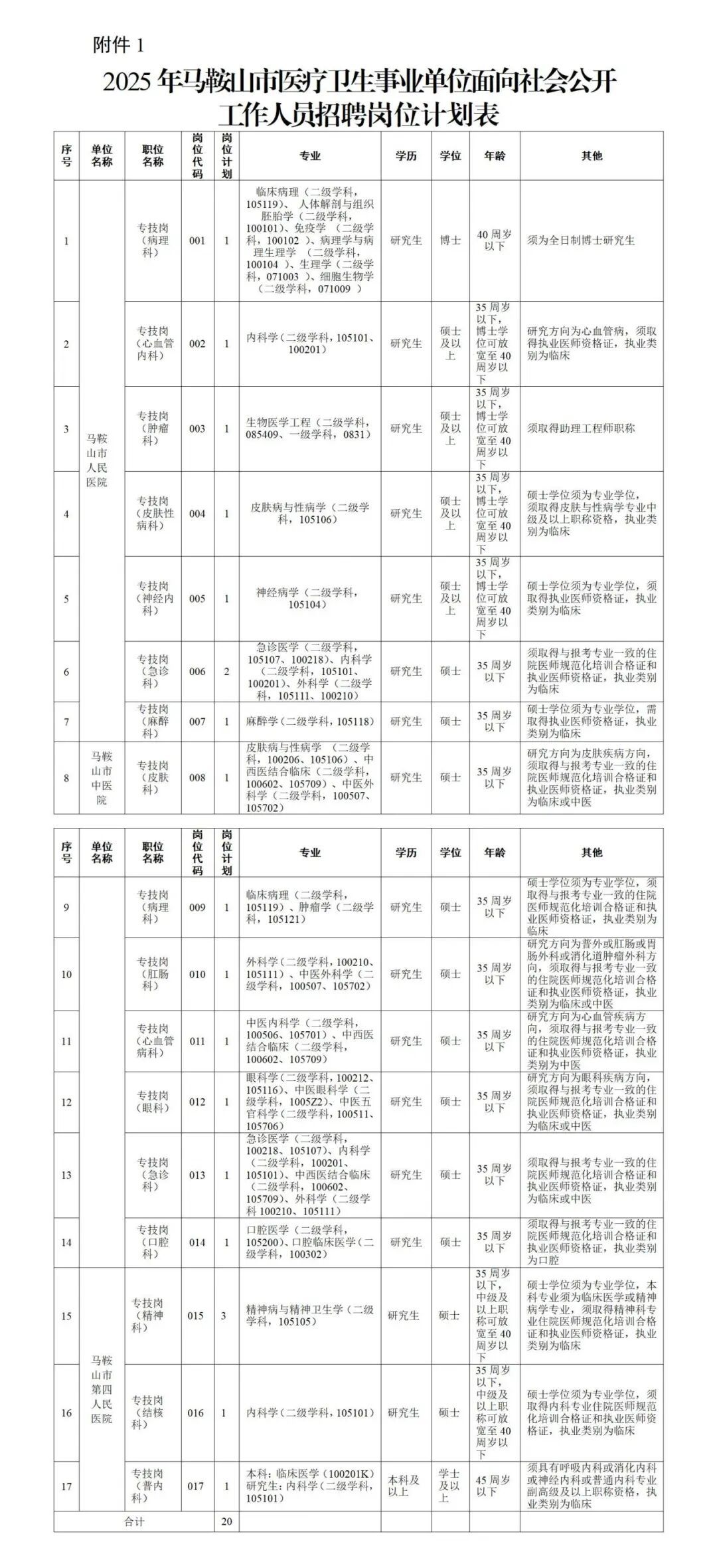 2025年马鞍山市医疗卫生事业单位面向社会公开招聘工作人员公告