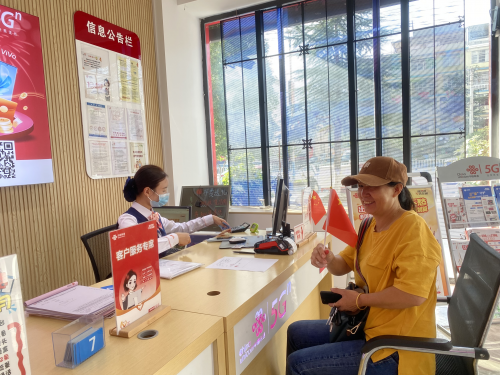 国庆期间,每位进店的客户都将收到一面精致的小国旗,这不仅是恩施联通对祖国的深情献礼,更是对客户的温暖问候。营业厅工作人员表示:"我们希望通过这面小国旗,让每一位用户都能感受到浓厚的爱国情怀,同时也传递我们'百倍用心'的服务理念。"这一份小小的礼物,承载着恩施联通对祖国的深情祝福,也架起了与用户之间沟通的桥梁。
