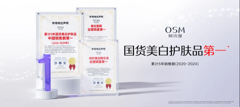 以领先科研实力为基,欧诗漫不仅在珍珠美肤科技领域形成了深厚且无可替代的品牌护城河,还成功坐上美白头把交椅,获得沙利文“国货美白护肤品第一”的市场地位认证。
