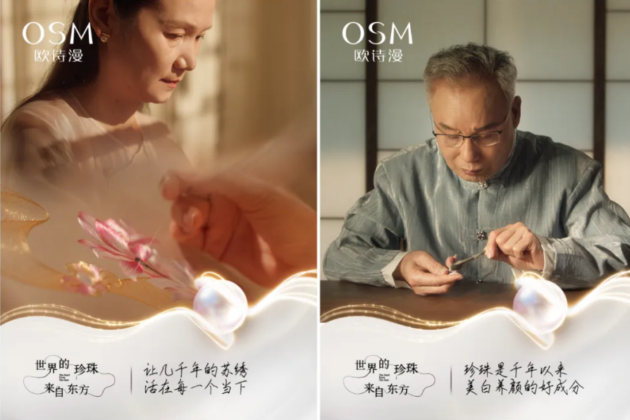 两种不同领域的传承碰撞出具象联结,既是致敬与礼赞,也共同传递东方匠心——超越时间的专注、对传承的赤诚以及对技艺不辍创新的坚持,才能真正传扬东方之美,更是欧诗漫将非遗永恒之美与珍珠护肤现代科技深度融合,让更多消费者体验珍珠美肤,让东方匠心被世界看见的价值升维实践。