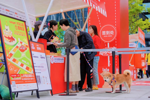 本次活动的"阿皇银行"由皇家宠物食品特别打造,成为游戏起点,每位参与者可在此领取2000初始游戏金币。而现场最受追捧的"小狗护照"办理中心更是排起了长队,宠物主人们纷纷带着爱犬在cancan大头贴亭拍摄专属证件照和"狗生四格"创意大片。