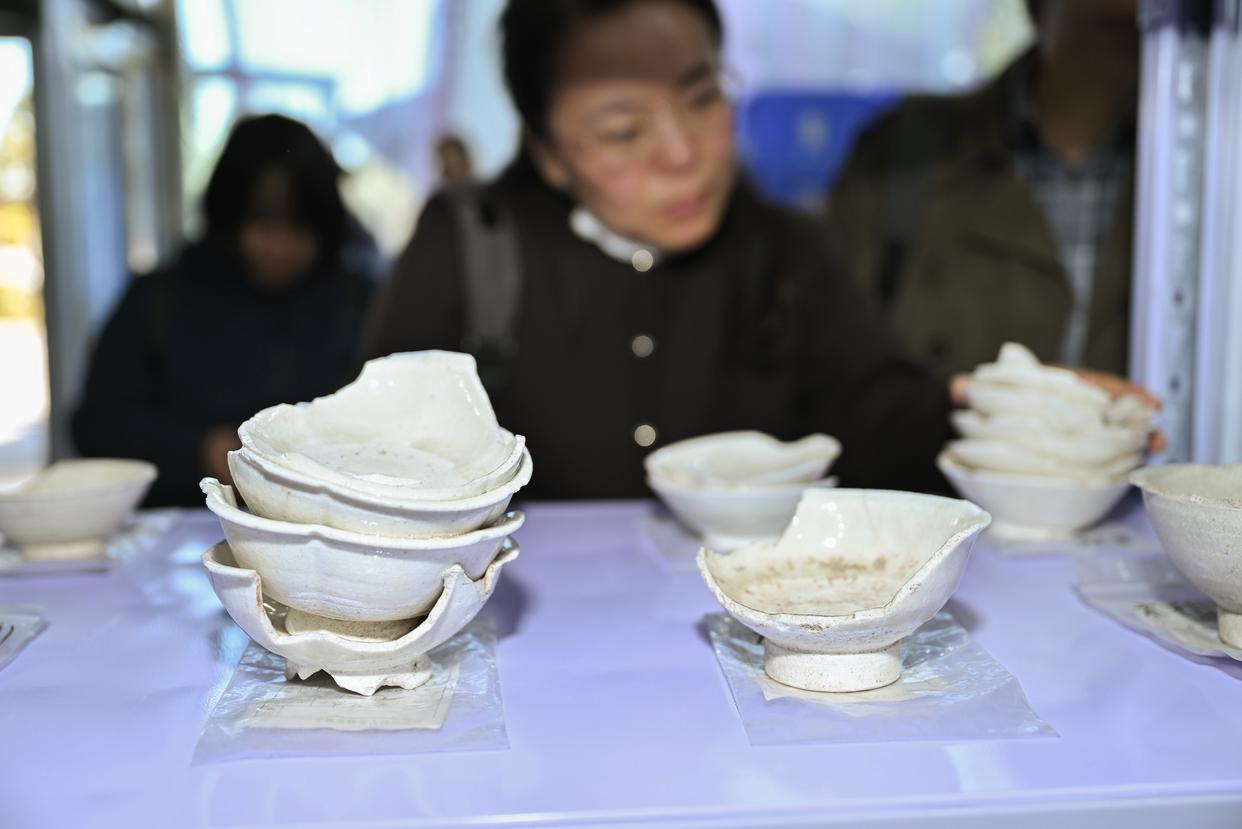 ↑ 在苏峪口瓷窑址考古队文物库房内摆放着大量出土的白瓷器物标本(10月13日摄)。新华社记者 李贺 摄