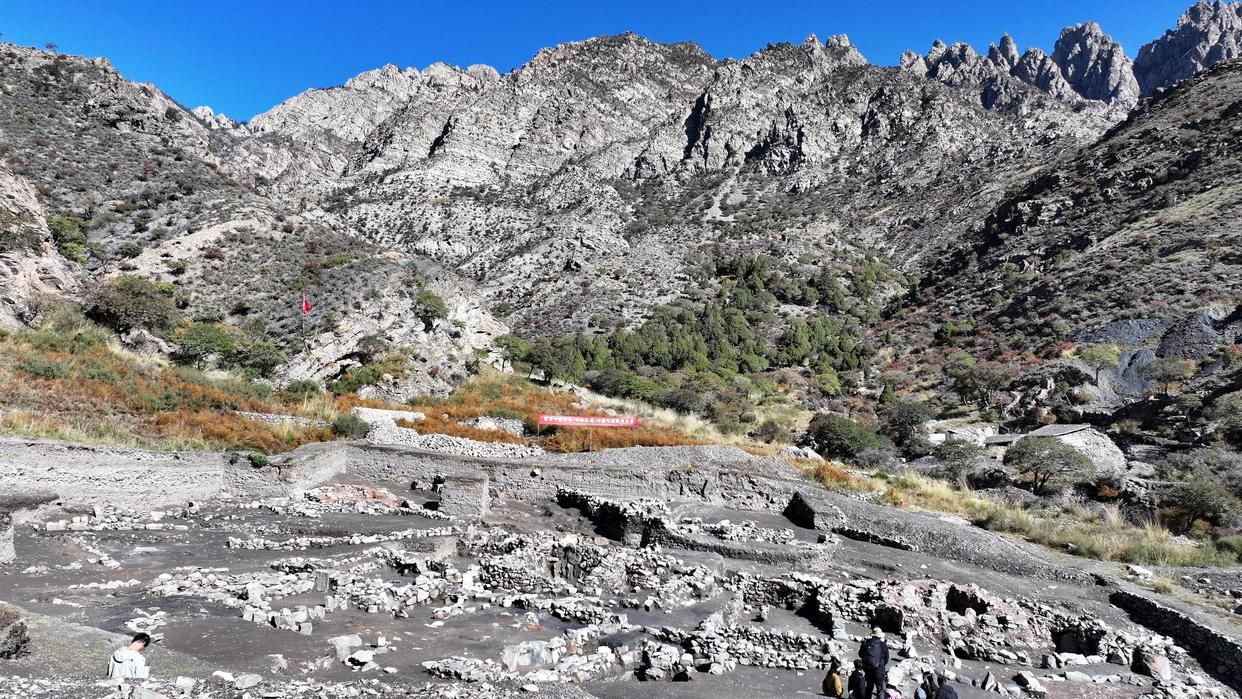 ↑ 这是位于宁夏回族自治区贺兰山苏峪口内的西夏瓷窑址2024-2025年度发掘区(无人机照片,10月13日摄)。新华社记者 王鹏 摄
