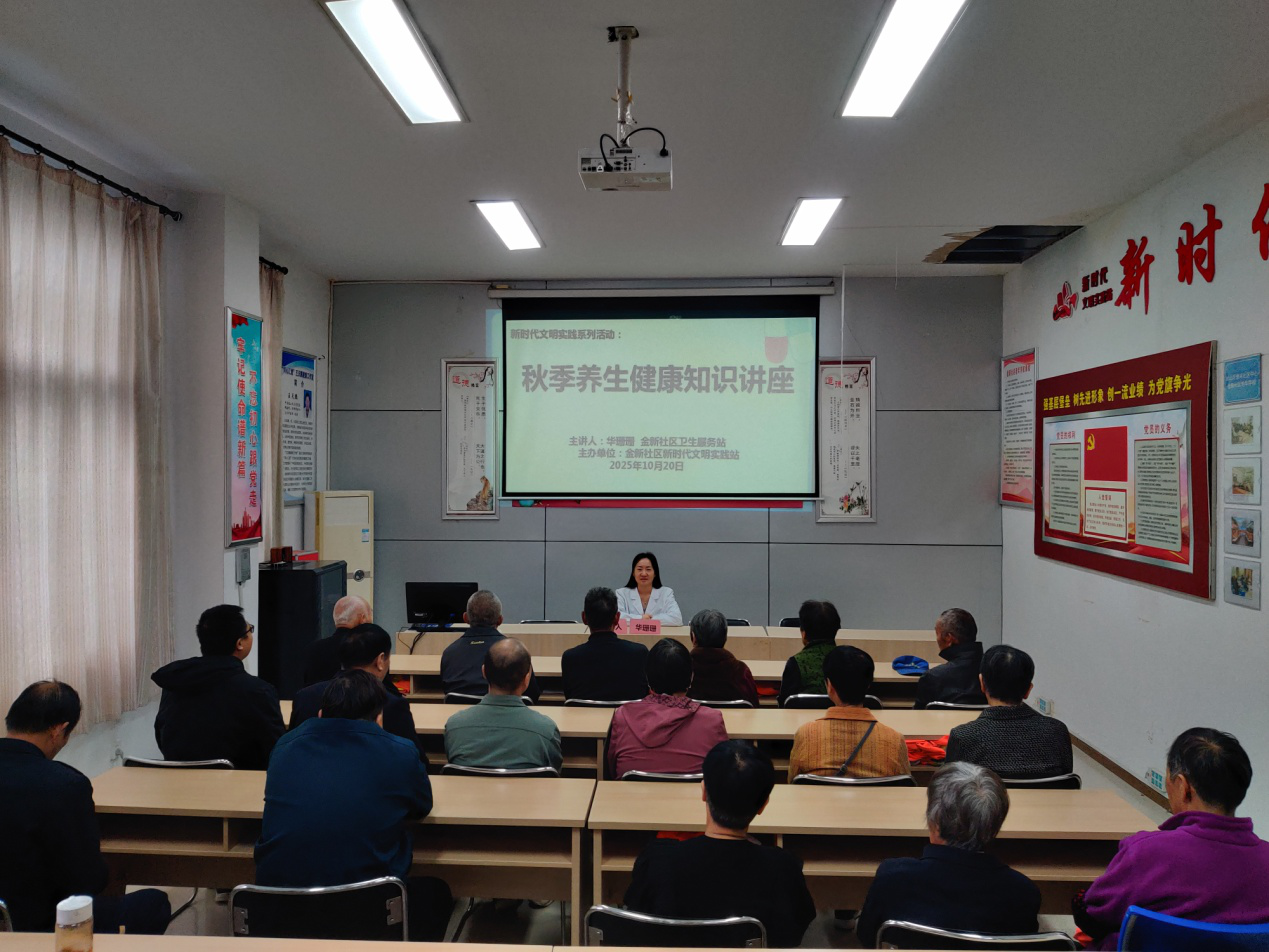 近日,金新社区新时代文明实践站开展秋季养生健康知识讲座,为居民普及养生知识,