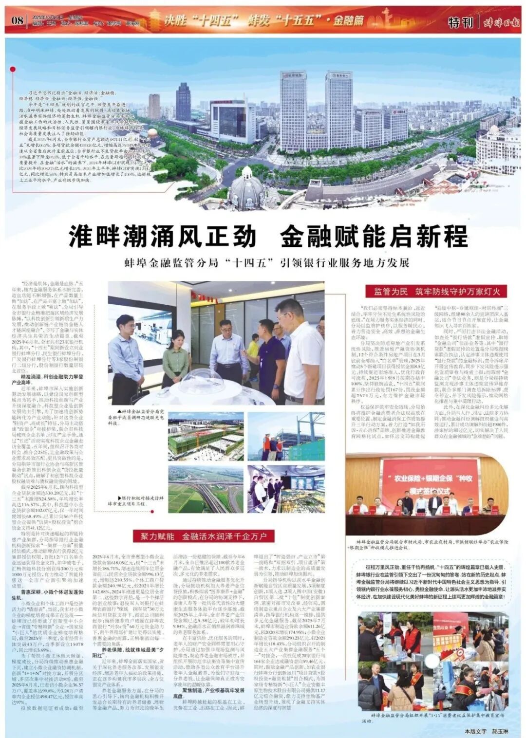 今年是“十四五”规划的收官之年,回望五年奋进路,淮畔明珠蚌埠,处处跃动着发展的脉搏,涌动着金融活水滋养实体经济的蓬勃生机。蚌埠金融监管分局牢牢把握金融工作的政治性、人民性,紧紧围绕市委市政府提出的经济发展战略和目标任务监管引领辖内银行业,为蚌埠市经济社会高质量发展注入了强劲动能。