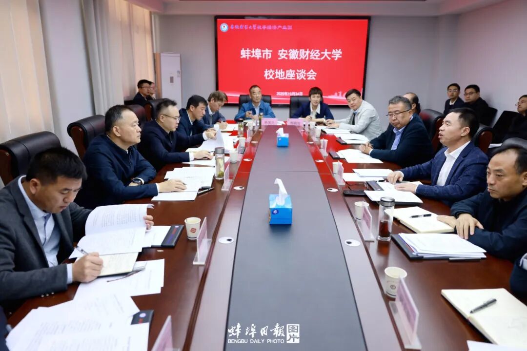 马军在座谈中对安徽财经大学长期以来关心支持蚌埠经济社会发展表示感谢。他说,安徽财经大学作为蚌埠的一张金色名片,与我市合作共建数字经济产业园,既是充分发挥蚌埠科教资源优势、助力产业转型升级的重要举措,也是推动产学研深度融合、创新高校人才培养模式、实现科技成果就地转化的生动实践。我们要深入学习贯彻党的二十届四中全会精神,着眼“十五五”规划,不断深化校地合作,坚定不移推进产业园建设,一体推进教育科技人才发展,助力产业园做大做强。要明确产业定位,聚焦“传感器数据应用+数字服务+AI”、安财优势学科、实际应用场景,以龙子湖区为主承载地,全力推动科技成果高效转化、产业生态不断优化。要强化问题导向,进一步理顺工作机制,坚持高位推动,加强统筹协调,强化属地责任,主动靠前服务,切实发挥好科创基金作用,健全利益共享等机制,携手实现互利共赢。要尊重知识、尊重人才,不断加强与大院大所对接,多做“打基础、利长远”的工作,陪伴更多“金种子企业”茁壮成长,为安财产业研究和园区建设发展创造良好条件。