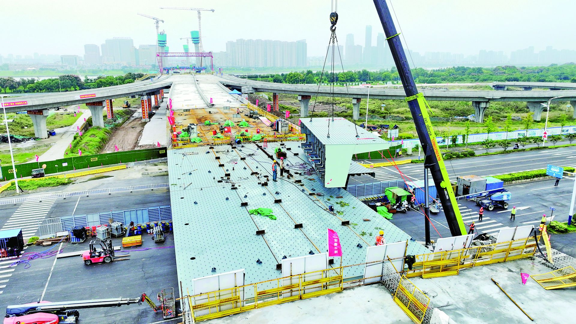 近日,随着钢箱梁架设完成,延安路淮河大桥及接线工程实现横跨淮上大道。该工程位于朝阳路淮河公路桥和解放路淮河大桥之间,南起龙子湖区延安路与凤阳路交叉口,终于淮上区双墩路交叉口,与延安北路顺接,线路全长2733米。据介绍,按照目前的施工进度,预计年底淮上区施工区域可交通放行。(融媒体记者 刘晨 摄) 0