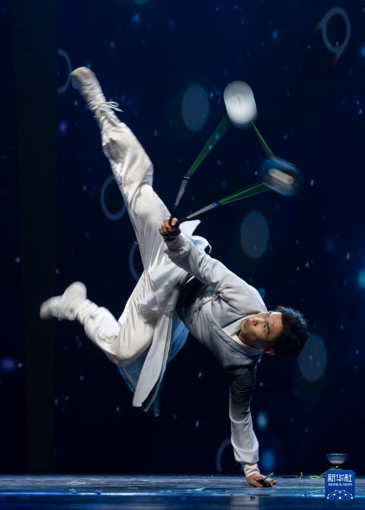 10月25日,在北京二七剧场举行的“艺苑撷英——2025年全国优秀青年艺术人才展演”上,中国铁路文工团有限公司曲艺杂技团演员表演杂技《奕中乾坤·扯铃》。