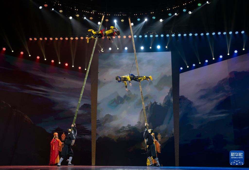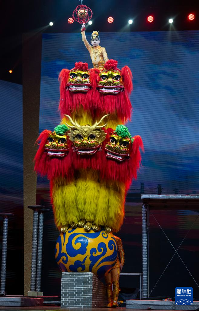 10月25日,在北京二七剧场举行的“艺苑撷英——2025年全国优秀青年艺术人才展演”上,河北省杂技团演艺有限公司、沧州杂技团演员表演杂技《祥狮跃九州》。