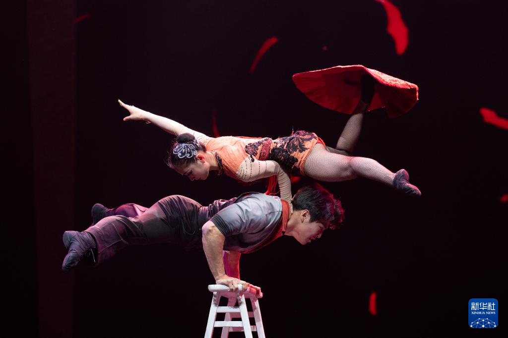 10月25日,在北京二七剧场举行的“艺苑撷英——2025年全国优秀青年艺术人才展演”上,广州市杂技艺术剧院有限责任公司演员表演杂技《炽爱情舞——双人转毯》。