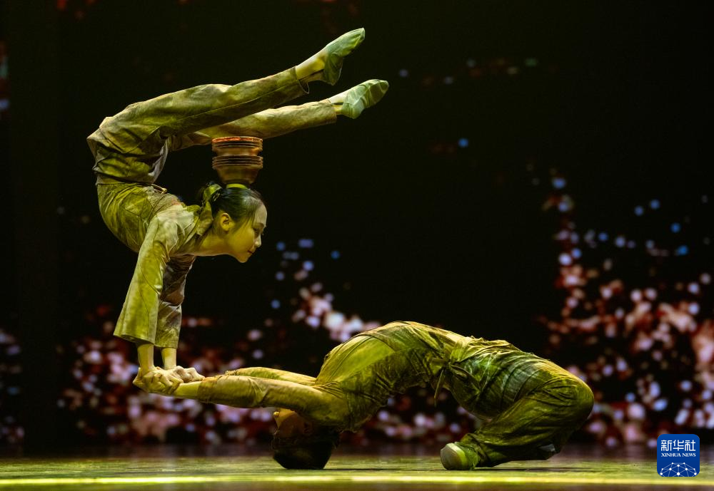 10月25日,在北京二七剧场举行的“艺苑撷英——2025年全国优秀青年艺术人才展演”上,聊城市杂技团演员表演杂技《俑·顶碗》。