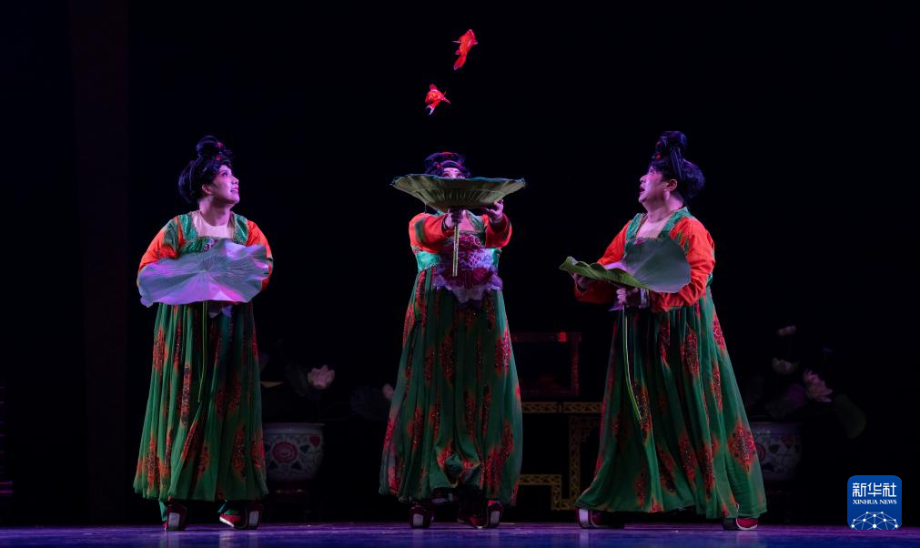 10月25日,在北京二七剧场举行的“艺苑撷英——2025年全国优秀青年艺术人才展演”上,天津市杂技团演员表演滑稽《唐宫·鱼韵》。