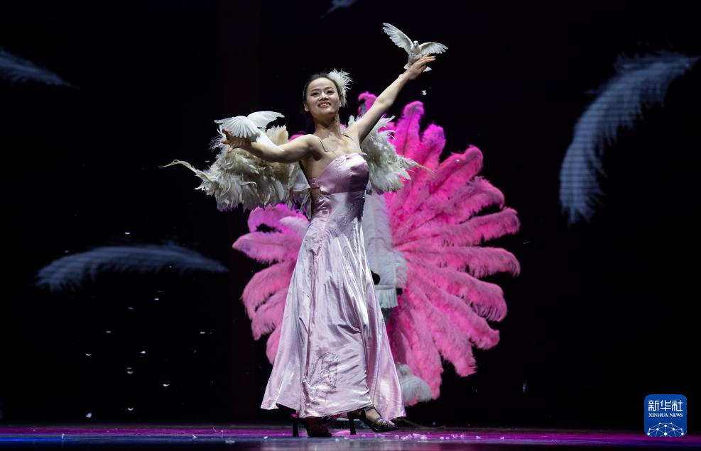 10月25日,在北京二七剧场举行的“艺苑撷英——2025年全国优秀青年艺术人才展演”上,射阳县杂技团演员表演魔术《羽》。