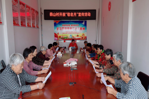 近日,燕山村志愿者组织辖区老年人开展“敬老月”宣传活动。