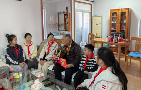 近日,第一社区退役军人服务站精心组织了一场温暖的慰问活动,带领铁路第三小学的少先队员代表们,前往抗美援朝老兵晏金岭家中,向老英雄致以崇高的敬意和真挚的祝福。 孩子们怀着无比崇敬的心情来到晏爷爷家。他们首先为爷爷献上了祝福的鲜花,送上了利用课余时间亲手制作的糕点和写满心里话的贺卡。这份纯真的心意让晏爷爷脸上洋溢起欣慰的笑容。 0
