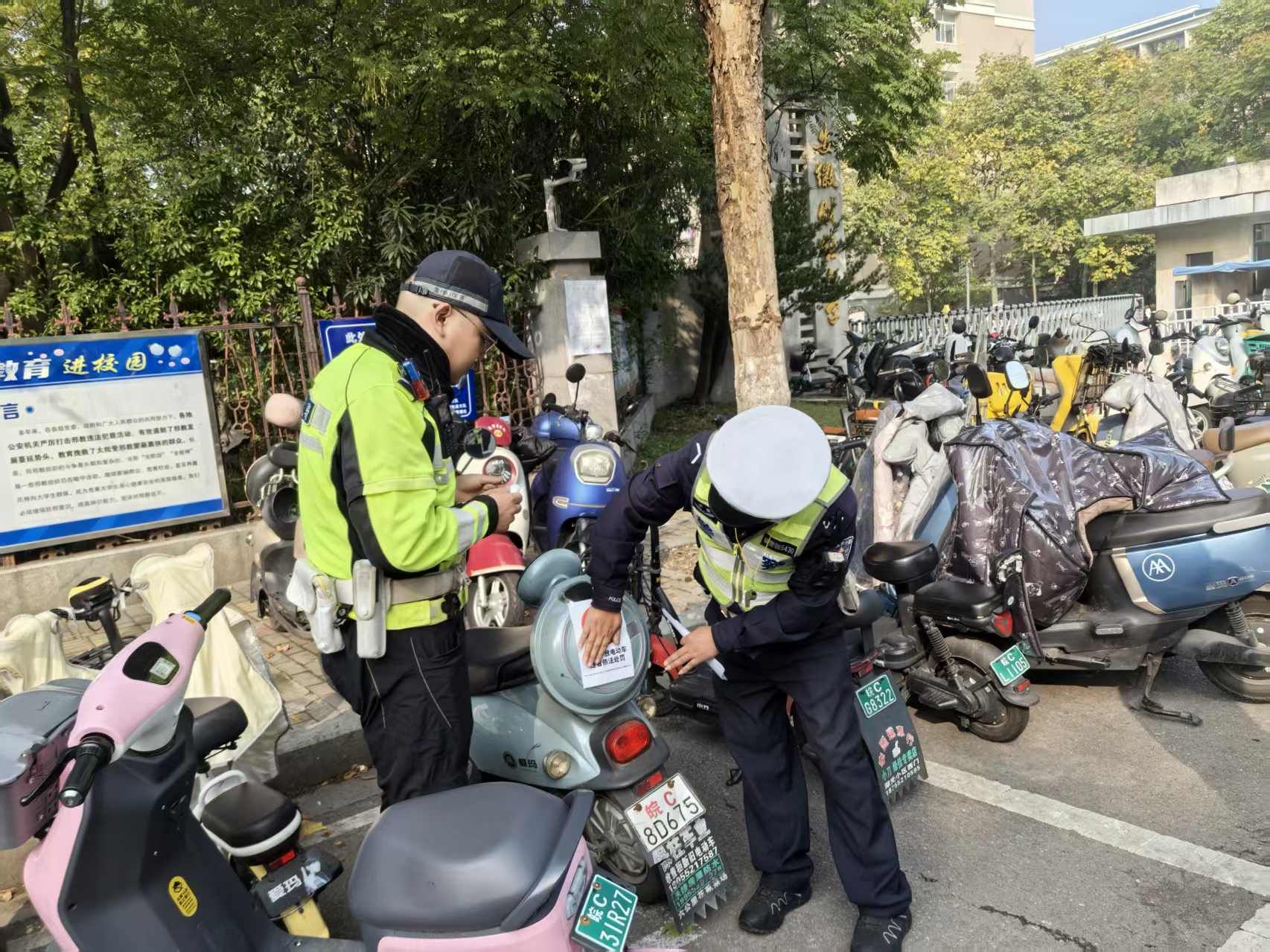 “每天中午12点到13时30分、傍晚17时至18时30分,是师生出行最集中的时候,也是违停最严重的时段。”现场执法的民警介绍,专项行动启动后,三方单位共同制定专项行动方案后,明确重点挂空时段,采取“柔性劝导+刚性执法”的“两步走”策略;通过前期密集宣传与现场引导,引导绝大多数车主养成规范停放习惯,随后针对经劝导后仍多次违停的少数车辆,采取“搬移+锁车+依法处罚”的刚性措施。不少师生在引导下主动将电动车转移至南门东侧的指定区域;对于少数经多次劝导仍不配合的车主,执法人员则依法采取搬移、锁车措施,并开具处罚告知单,形成有力震慑。