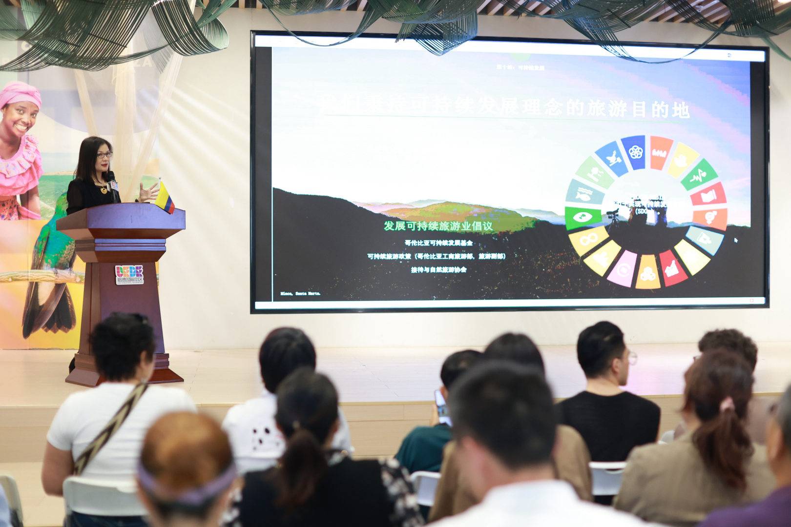 随后,哥伦比亚贸易投资旅游局高级投资顾问朱爽登台进行主题宣讲,系统介绍哥伦比亚最新的旅游线路、自然资源与合作机遇。她指出,哥伦比亚坐拥六大自然区域,从安第斯山脉高峰至加勒比海沿岸,从亚马逊原始雨林到历史悠久的殖民城市,每一处皆具独特风貌。朱爽特别推荐了多条2025年主推主题线路,并重点介绍了新兴基础设施与可持续旅游项目,展现哥伦比亚在保护生态环境的同时,为游客提供高品质服务的承诺。