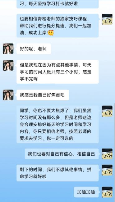 在跟学管老师沟通时,我的焦虑和不自信全面爆发:“老师,我白天需要上班,每天学习的时间很少,我基础这么差,还来得及吗?”