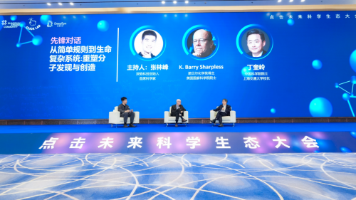 大会阵容强大、议题前沿。在两次诺贝尔化学奖得主、美国国家科学院院士K. Barry Sharpless教授的引领下,多位跨学科学者与产业代表共聚一堂,围绕“点击未来”这一主题,深入讨论了AI与“点击化学”在前沿交叉与产业转化中的机遇与挑战。与会嘉宾也从实验室研究到产业化应用进行了多维度交流与讨论,共同描绘出新一代药物研发与材料科学等领域的未来发展方向,助力产业升级。