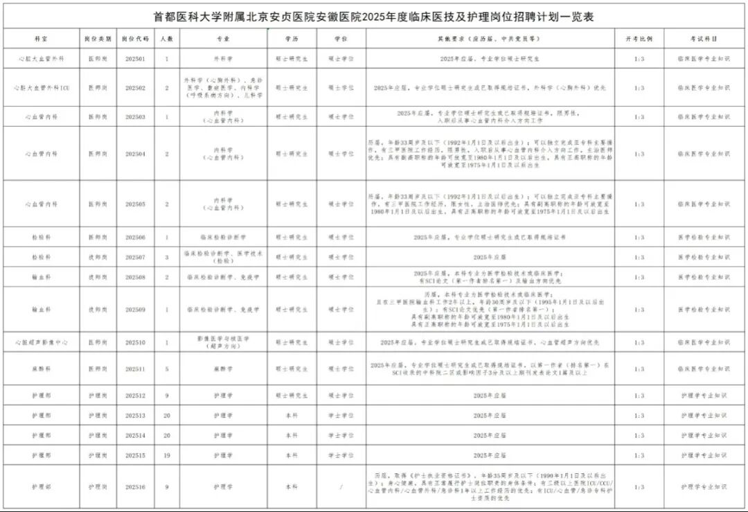 首都医科大学附属北京安贞医院安徽医院 2025年临床、医技、护理岗位招聘公告