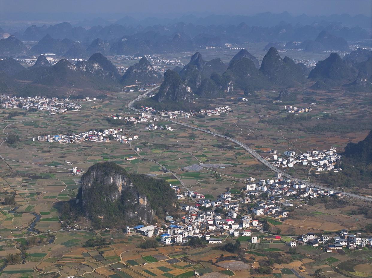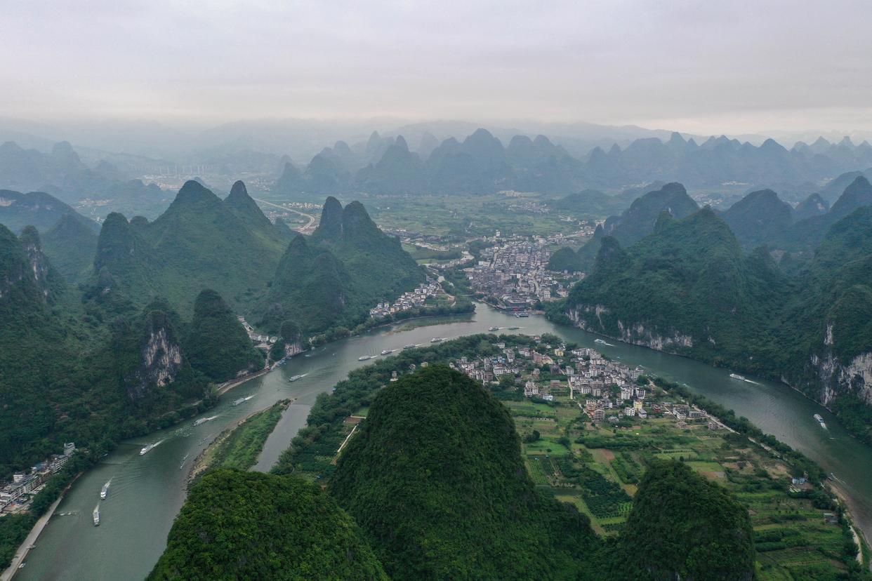 这是群山环绕的桂林市阳朔县兴坪镇乡村(无人机照片,2021年4月25日摄)。新华社记者 黄孝邦 摄