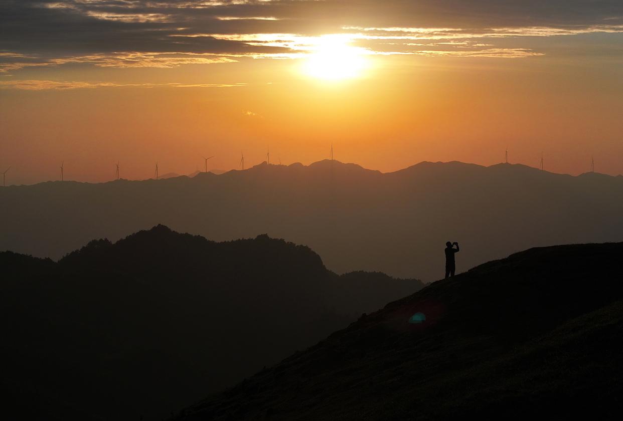 在广西融水苗族自治县杆洞乡尧告村高山牧场,游客在欣赏日落景色(2024年8月15日摄)。新华社记者 黄孝邦 摄