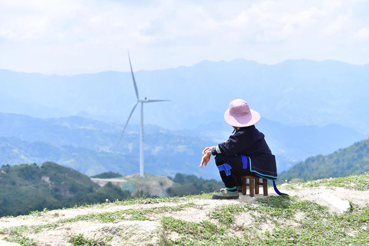 在广西融水苗族自治县杆洞乡尧告村高山牧场,老人在山顶眺望远山(2021年8月22日摄)。新华社记者 黄孝邦 摄