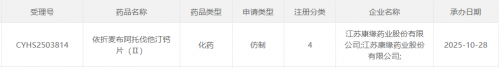 目前,康缘药业在血脂调节剂市场已拥有HMGCoA还原酶抑制剂辛伐他汀片、贝特类苯扎贝特片、其他血脂调节剂多烯酸乙酯软胶囊,暂无血脂调节复方制剂获批。康缘药业在2025年2月提交了依折麦布阿托伐他汀钙片(Ⅰ)的4类仿制上市申请,并在近日报产依折麦布阿托伐他汀钙片(Ⅱ),可见公司已瞄准这个热销品种,意在开拓新市场。