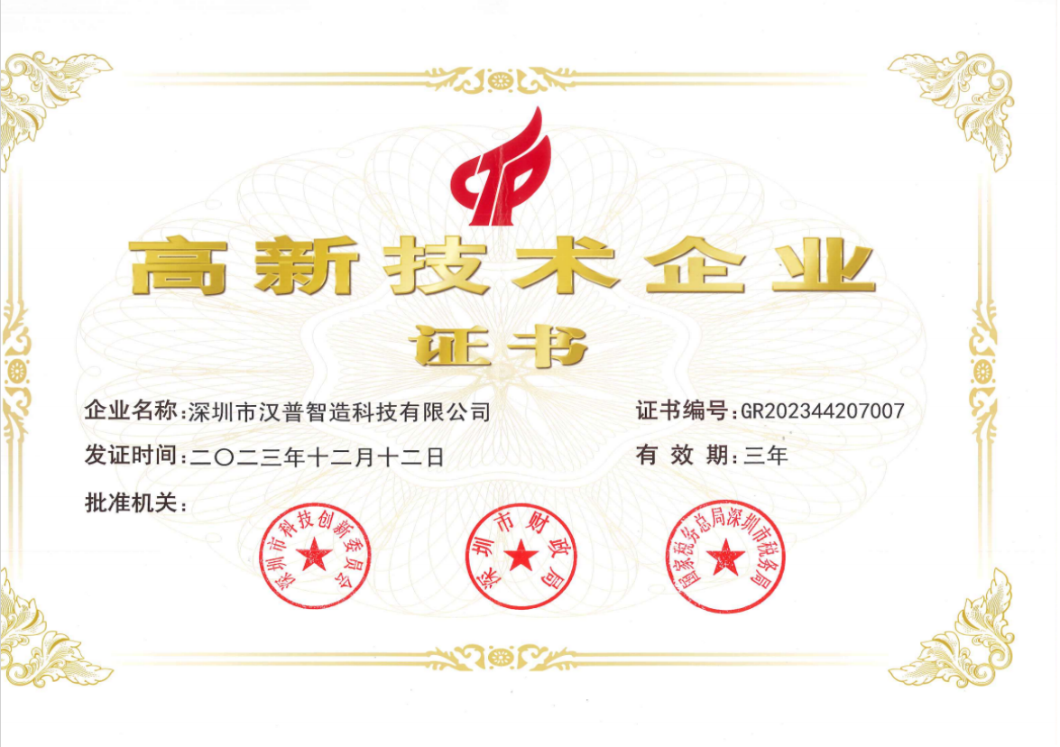汉普智造核心团队由拥有十余年华为等企业背景的资深工程师组成,设计团队中95%以上成员具备8年以上行业经验。公司目前已取得国家高新技术企业、深圳市专精特新企业等多项资质,并拥有近百项PCB相关专利。