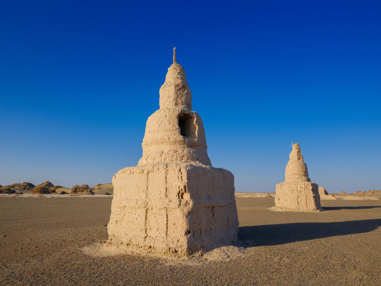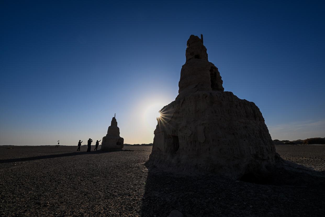 这是11月3日在内蒙古阿拉善盟额济纳旗拍摄的居延遗址中的西夏五塔遗址。新华社记者 马金瑞 摄