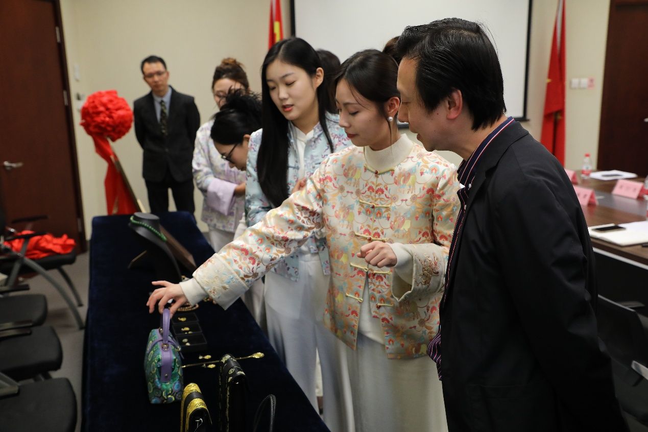 发布会现场氛围庄重热烈。蜀锦织造现场展示、香云纱面料陈列等环节,吸引众多嘉宾驻足观看。非遗传承人代表与参会嘉宾互动交流,讲述坚守技艺、守护文化的动人故事,为现场观众带来沉浸式文化体验。