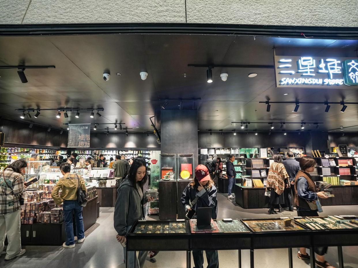旅客在位于成都东站的三星堆博物馆与铁路部门联名文创专区商店内选购文创产品(11月3日摄)。新华社发(费思童摄)