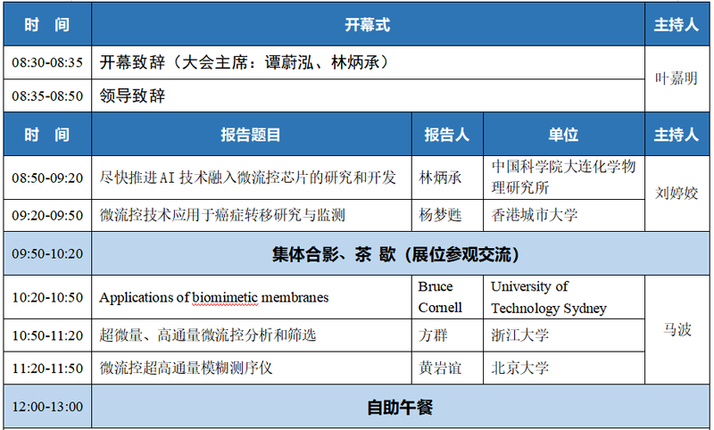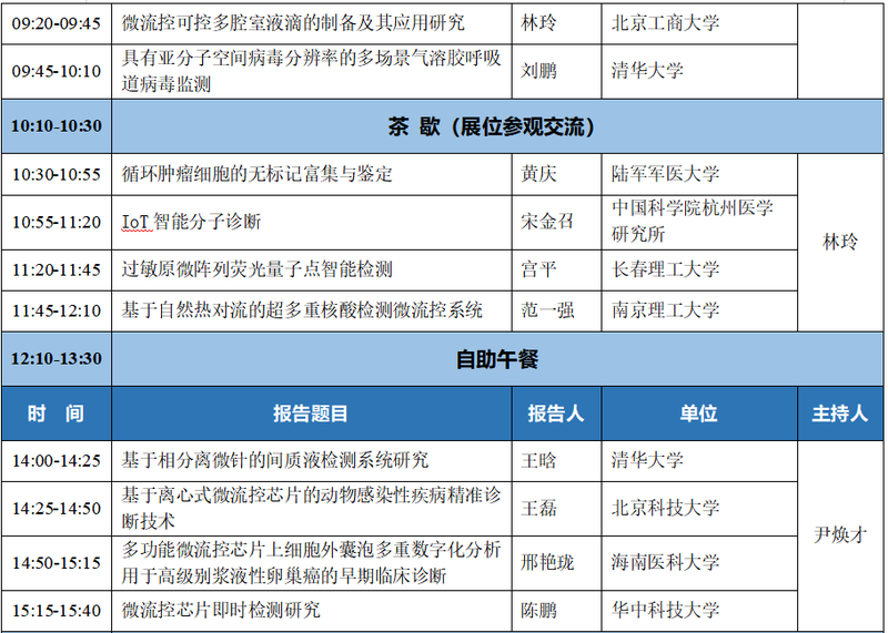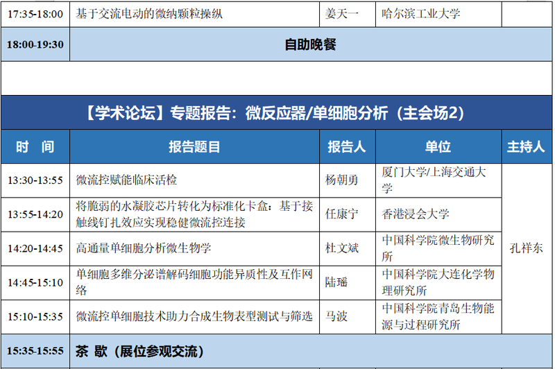 (八)微流控产业论坛:工程化与产业化经验交流、微流控芯片产品开发中的关键及共性问题、微流控产品展示及推介等;
