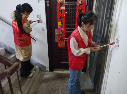 近日,龙湖新村街道金滨社区网格员对楼栋小广告开展清除工作。