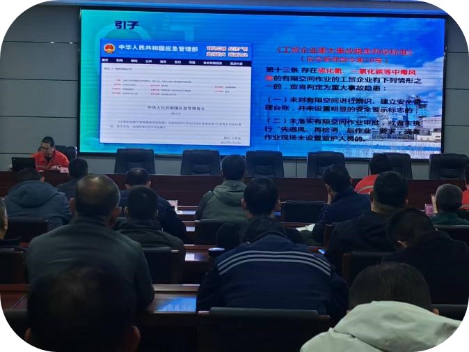 企业自主强内功,主动防控显担当。 在市应急局的统筹部署下,各企业深刻认识到有限空间作业安全的重要性,企业主动“强内功”,通过集中观看警示片、开展应急演练、建立“安全学习日”等活动,将宣教成果转化为实效。