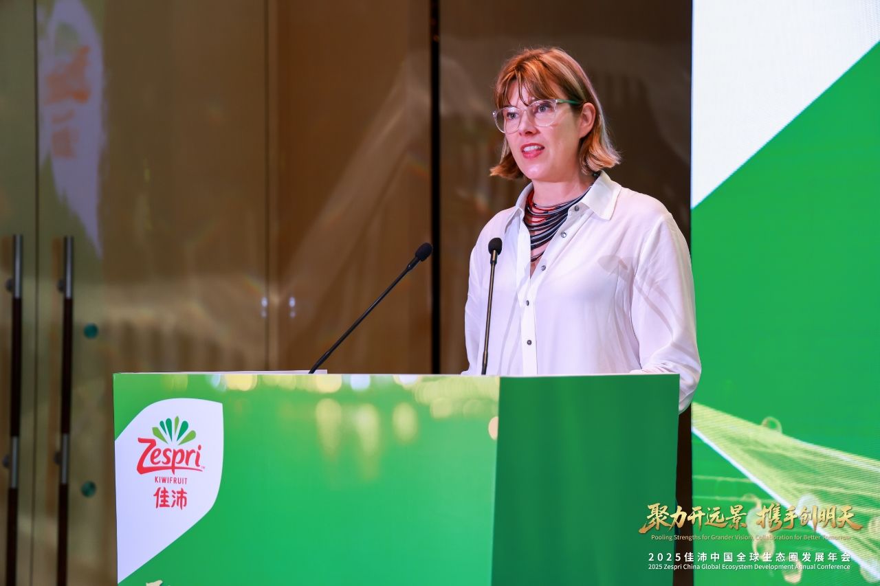新西兰初级产业部首席转型官Jenny Cameron现场致辞,强调翻番目标与新西兰政府“出口价值倍增”贸易战略同频共振,未来将在检疫准入、供应链碳中和与品牌保护方面给予佳沛及中国伙伴最高优先级支持。