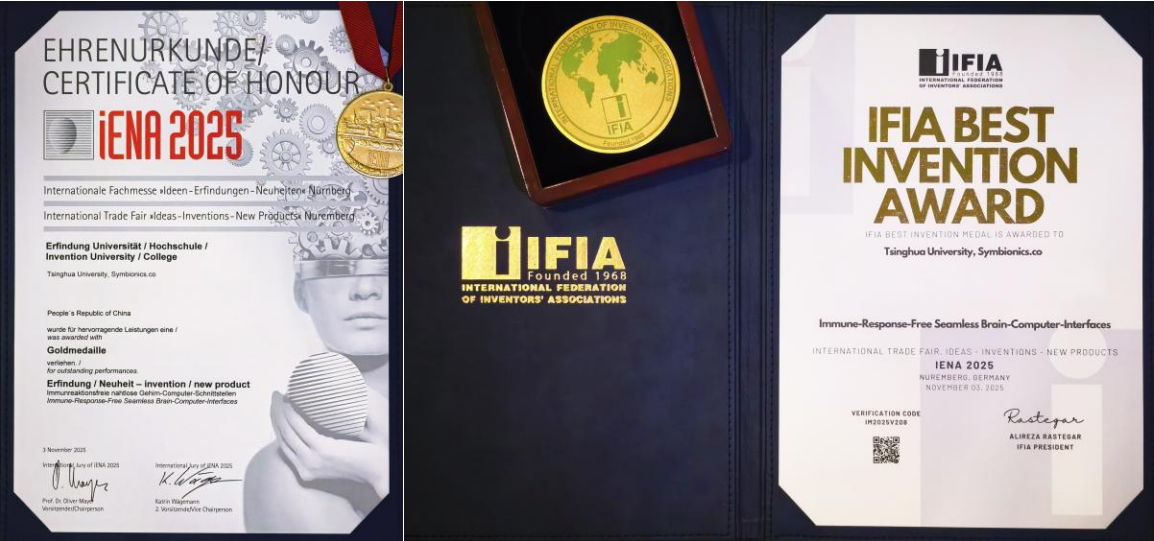 由和泽启元(北京)科技有限公司(下称“和泽科技”)首席科学家戴小川带领团队研发的“零排异人机无缝融合脑机接口系统”(Immune-Response-Free Seamless Brain-Computer-Interfaces)参展项目,从全球21个国家和地区的540项前沿科技成果中脱颖而出,一举夺得“纽伦堡国际发明展金奖”与“国际发明者协会联合会(IFIA)最佳发明奖”两项重量级荣誉。