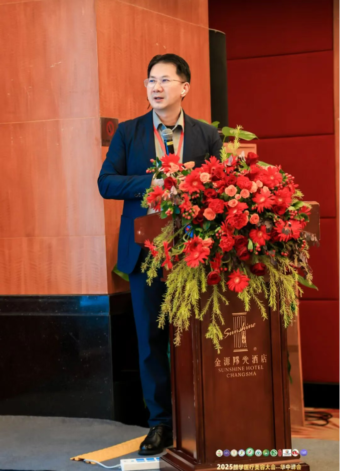 在大会的专家授课环节,长沙美莱刘翔院长首先带来了《中医理论在现代医疗美容中的指导和作用》的专题分享。他从中医的整体观念和辨证论治理论出发,深入浅出地阐述了中医理论在现代医疗美容中的创新应用,提出了"内外兼治、标本兼顾"的美容新理念。刘翔院长指出,将中医的平衡理论融入现代美容诊疗,能够为求美者提供更加个性化、全方位的美丽方案。这一创新性观点引发了在场专家的浓厚兴趣,现场掌声不断。
