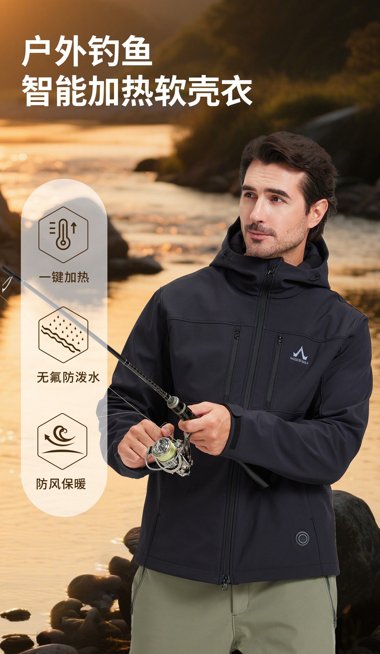 此次双十一,阿玛迪斯推出的7款智能加热装备,从技术到设计全面发力,在兼顾保暖的同时兼具灵活性。其中,智能加热软壳裤搭载进口碳纤维加热丝,3秒速热且支持三档精准控温,让不同低温场景下的保暖需求都能被精准满足;智能加热冲锋裤更创新采用后腰多区域加热科技,配合三防面料打造“移动保暖舱”,半松紧腰围与膝盖立体剪裁设计,让抛竿、蹲起等动作全程灵活无束缚,彻底告别“保暖却笨重”的尴尬。