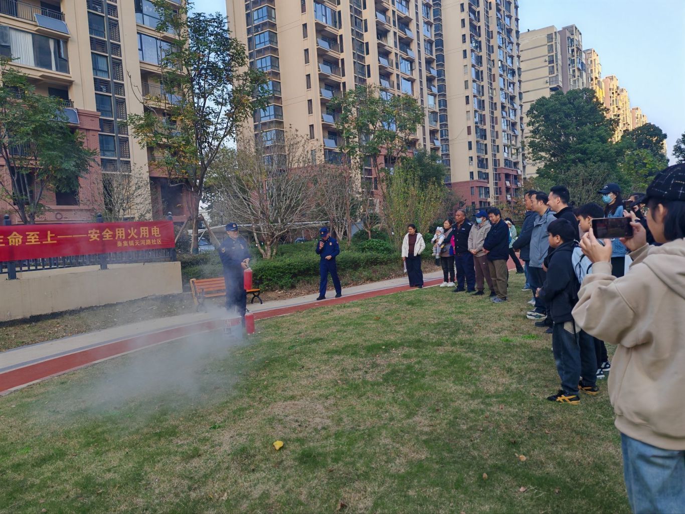 蚌埠发布客户端讯  伴随着一阵干粉喷出,模拟火点应声而灭。这不是消防演习现场,而是蚌埠高新区秦集镇天河路社区居民在消防员指导下,亲手扑灭火焰的真实场景。近日,一场名为“‘河’美邻里+安全伴我行”的主题活动在鼎元府邸北苑广场举行,将专业的安全演练与贴心的便民服务融为一体,为社区的秋日增添了一份浓浓的“安全感”。