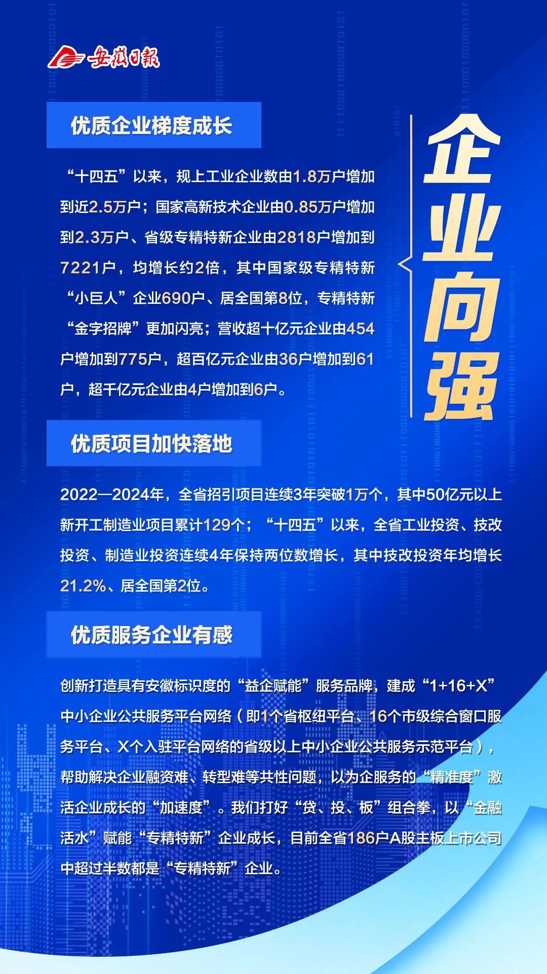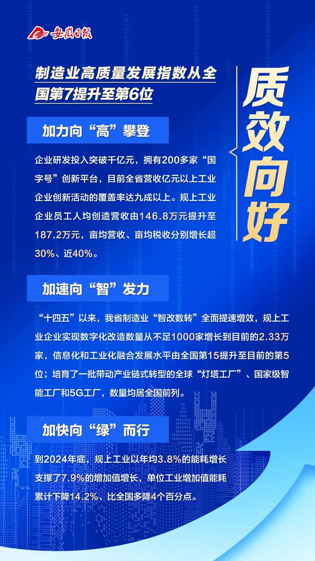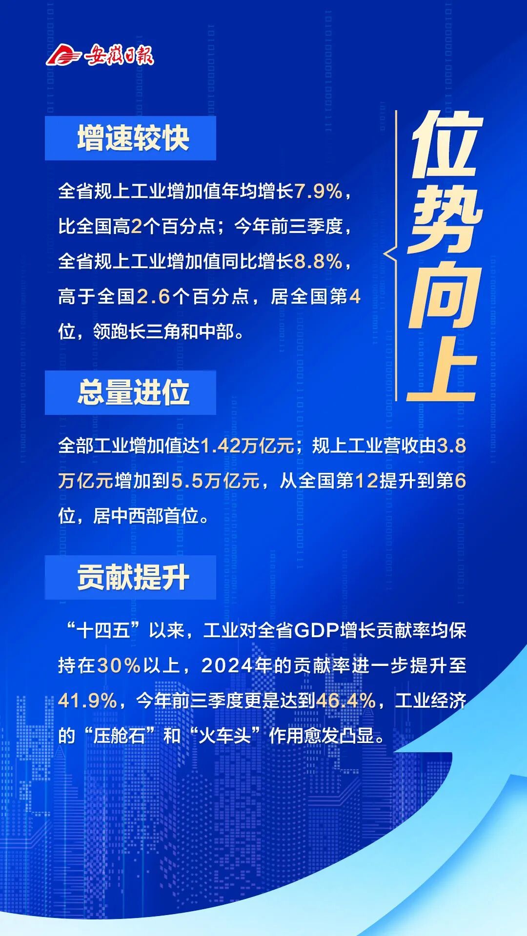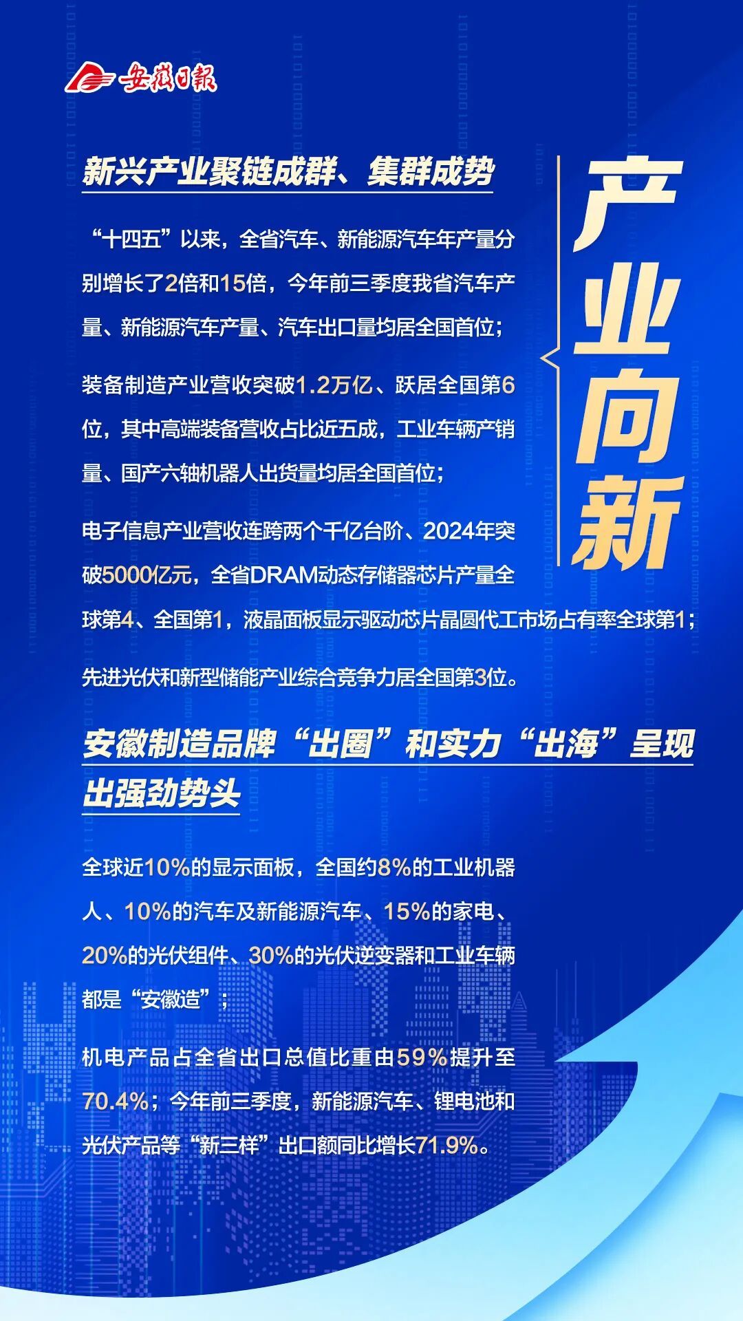 安徽省工业和信息化厅厅长冯克金表示,“十四五”以来,全省工业经济发展呈现位势向上、结构向优、质效向好、产业向新、企业向强的良好态势,实现了从传统农业大省到制造大省、从能源原材料基地到新兴产业聚集地的跨越升级,安徽历史性迈入工业大省行列。