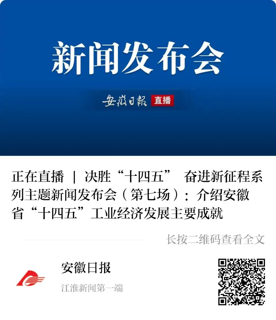11月12日,安徽省政府新闻办举行新闻发布会,发布安徽省“十四五”工业经济发展主要成就。