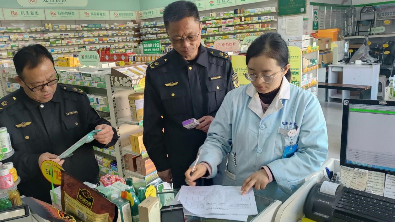 在具体检查工作中,执法人员紧扣药品流通全链条监管要点,围绕药品质量管控、销售行为规范及陈列储存管理等展开细致排查。在药品来源追溯环节,重点核查购进渠道合法性,逐一对进货票据、供应商资质证明及药品验收记录进行查验,确保每一批次药品来源清晰、流向可溯,从源头阻断非法购药渠道。