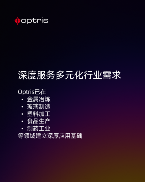 Optris已在金属冶炼、玻璃制造、塑料加工、食品生产、制药工业等领域建立深厚应用基础。
