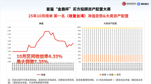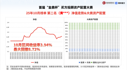 大赛组委会相关负责人表示,10月榜前三甲的理念实践,不仅验证了大类资产配置在震荡市的价值,更为行业提供了“从收益导向到客户需求导向”的转型样本。后续大赛将持续跟踪参赛者策略,通过直播解析、案例研究等形式,让优质配置理念惠及更多投资者。首届“金鼎杯”买方投顾资产配置大赛11月榜单竞争火热进行中,投资者可通过理财魔方APP跟踪赛事动态,获取更多实战配置参考。