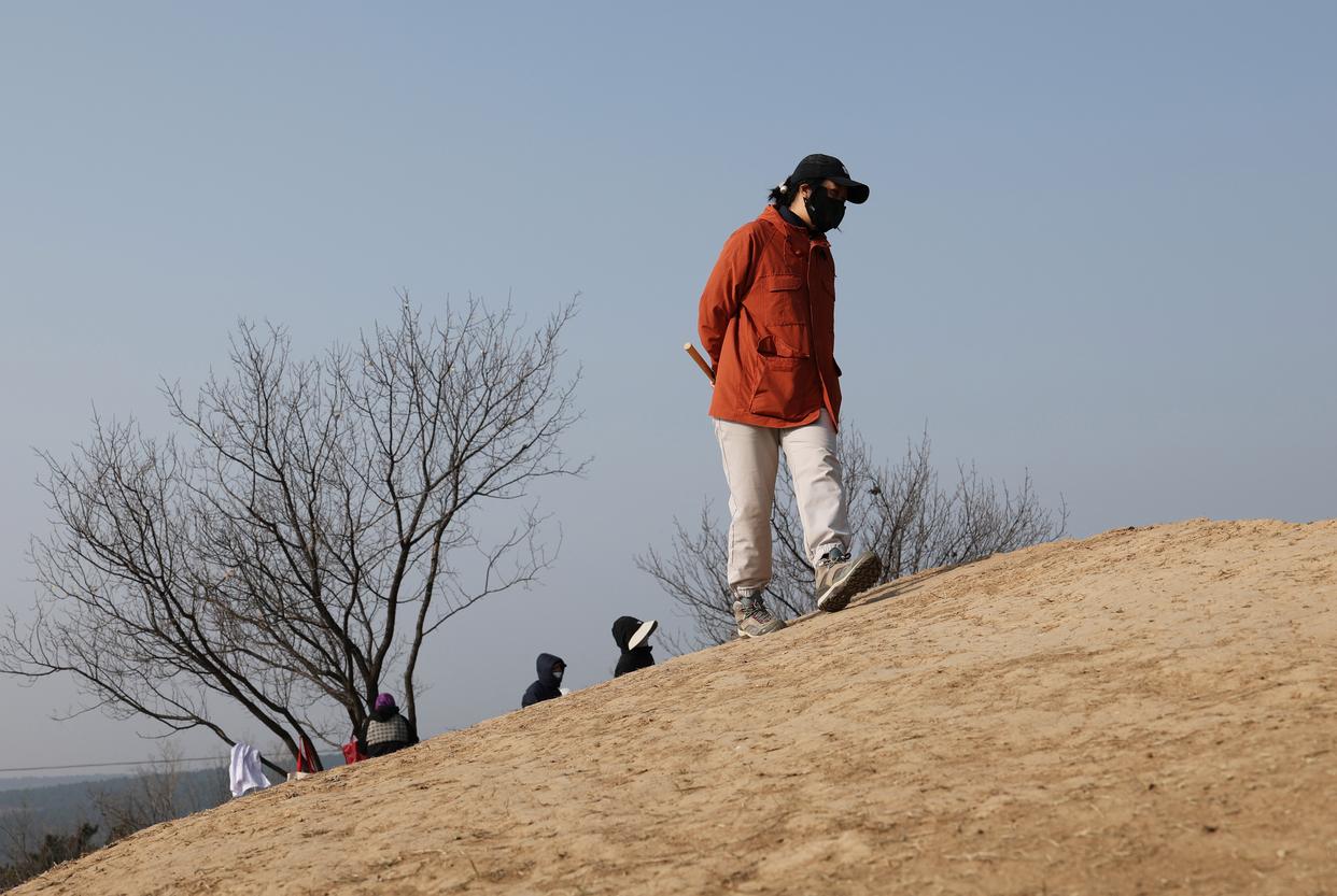 3月11日,在辽宁省朝阳市双塔区,于怀石在调查红山文化遗址。新华社记者 吴青昊 摄